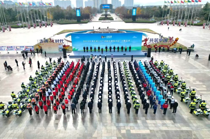 12月2日,市中区光明广场旌旗飘扬、气氛热烈,“文明交通·礼行天下—2025年枣庄市122‘全国交通安全日’主题活动”在此隆重启动。副市长、市公安局局长朱清彬出席活动并讲话,市政府副秘书长李明智主持活动,市中区委副书记、区长韩耀辉致辞,市公安局交管支队及各相关单位负责人共同参与,为活动助力添彩。