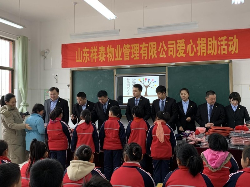 近年来,山东祥泰物业立足新发展、贯彻新理念、积极主动承担企业社会责任,在企业稳健发展的同时,不忘践行公益事业,每年从企业利润中拿出数十万元用于赡助贫困家庭、关注留守儿童等公益项目;先后安置了下岗职工500余人;多次携手媒体单位深入到乡村小学开展“暖冬行动”、“六一送礼包”等系列慈善募捐和走访慰问活动,赢得了社会各界的广泛认可和一致好评。