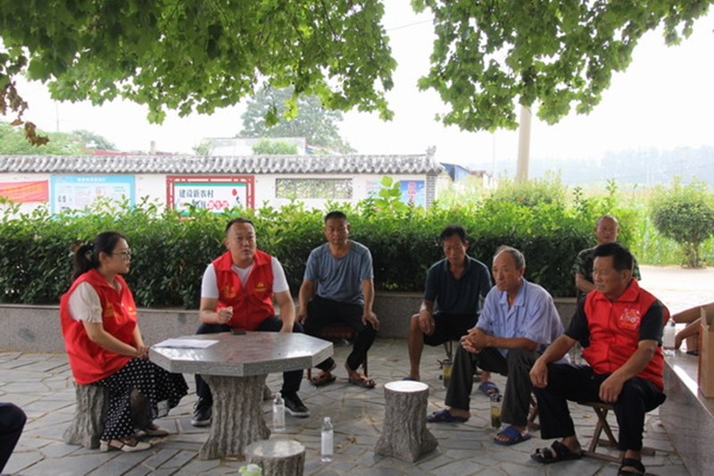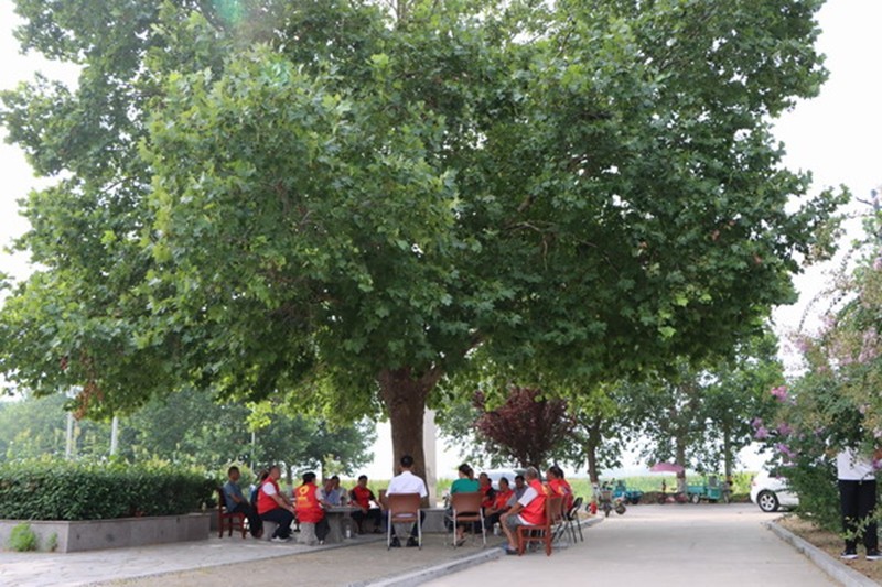 8月11日上午,立秋的节气驱散盛夏残存的酷暑,些许凉风轻抚着界河镇北闫楼村村委会外的梧桐树。梧桐树下,一张石桌,一杯清茶,一身红马甲,一名宣讲员的娓娓道来中,30余位听众沿着历史的时间轴,穿过战乱频仍、山河破碎的苦难年代,在中国人民和中华民族的伟大觉醒中,在中国共产党人的精神谱系上,看到熠熠生辉的十六个字:“党群同心、军民情深、水乳交融、生死与共”。