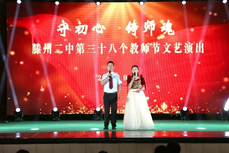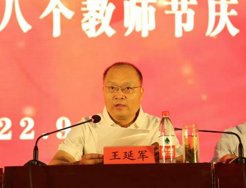 为热烈庆祝第38个教师节,迎接党的二十大,9月8日,滕州市第二中学在学术报告厅召开教师节庆祝大会,校领导及全体教职员工参加了大会。滕州教育事业发展研究中心主任王延军出席会议并讲话。校党委书记刘金山主持会议。