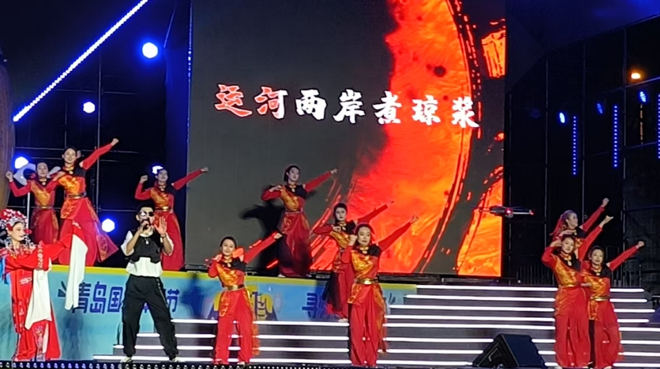 开幕式在欢快的开场秀《干杯吧朋友》中拉开帷幕,动感的旋律瞬间点燃了现场气氛。紧接着,《去年的夏天》《今晚不想睡》等歌曲接连唱响,让观众沉浸在美妙的音乐氛围中。歌伴舞《美丽台儿庄》以优美的舞姿和动人的歌声,展现了台儿庄独特的水乡风情,舞蹈《运河号子》则用刚劲有力的动作,诠释了运河文化的深厚底蕴。